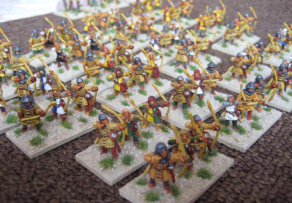 The foot archers, bulk of the army. The equipment is varied and the headgear is correct