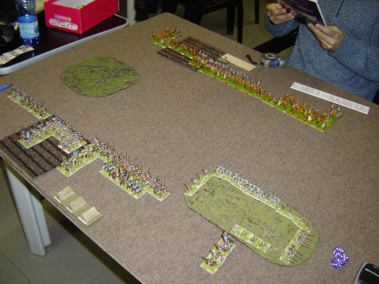 The Alan in the turn of engagement against my main battle line rolled very low pips, and his charge wasn't well coordinated, with some troops going spontaneous and exposing to my countercharge.