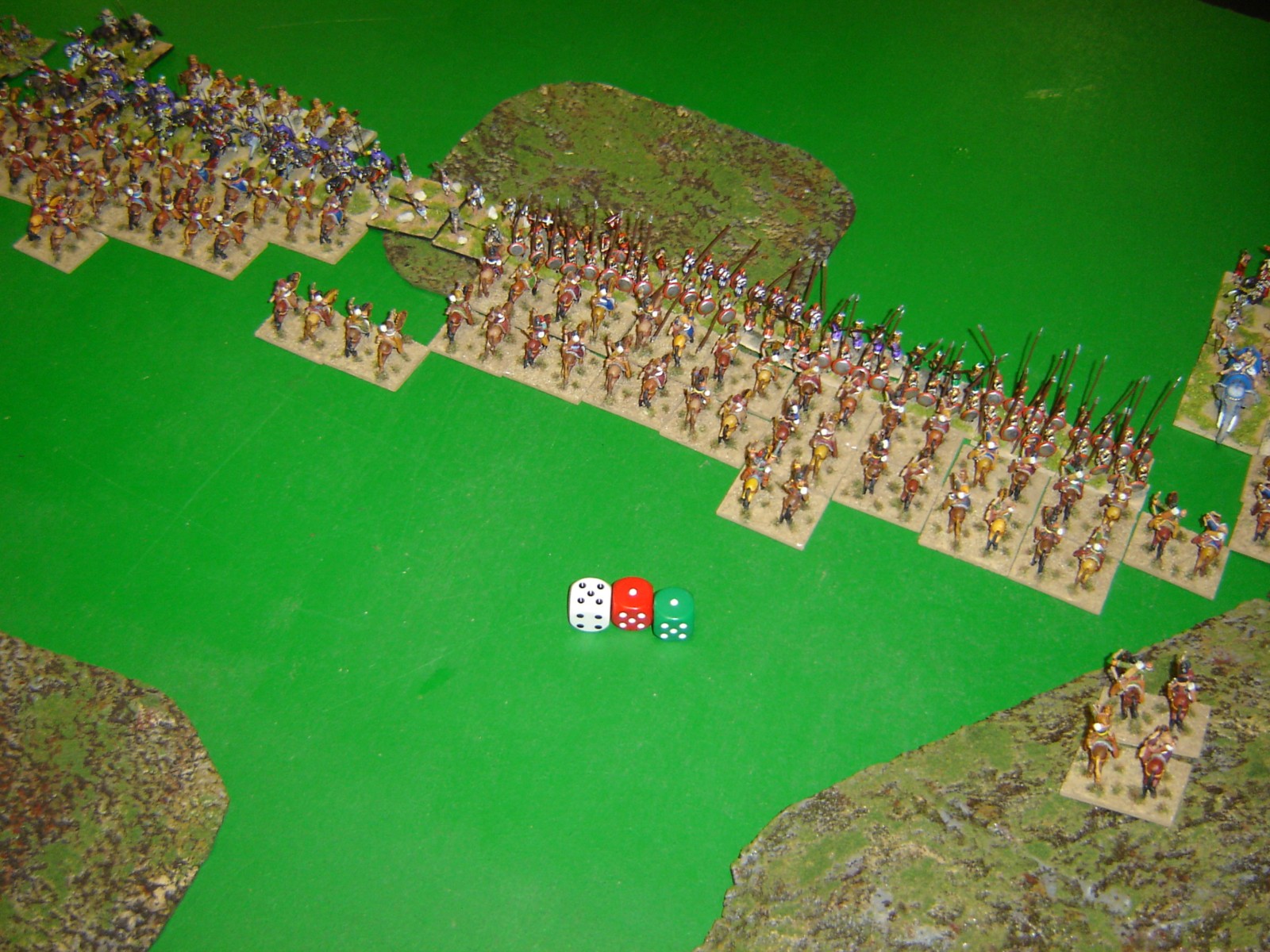 The wedges charged, and losses mounted. My left wing had ceased to exist.