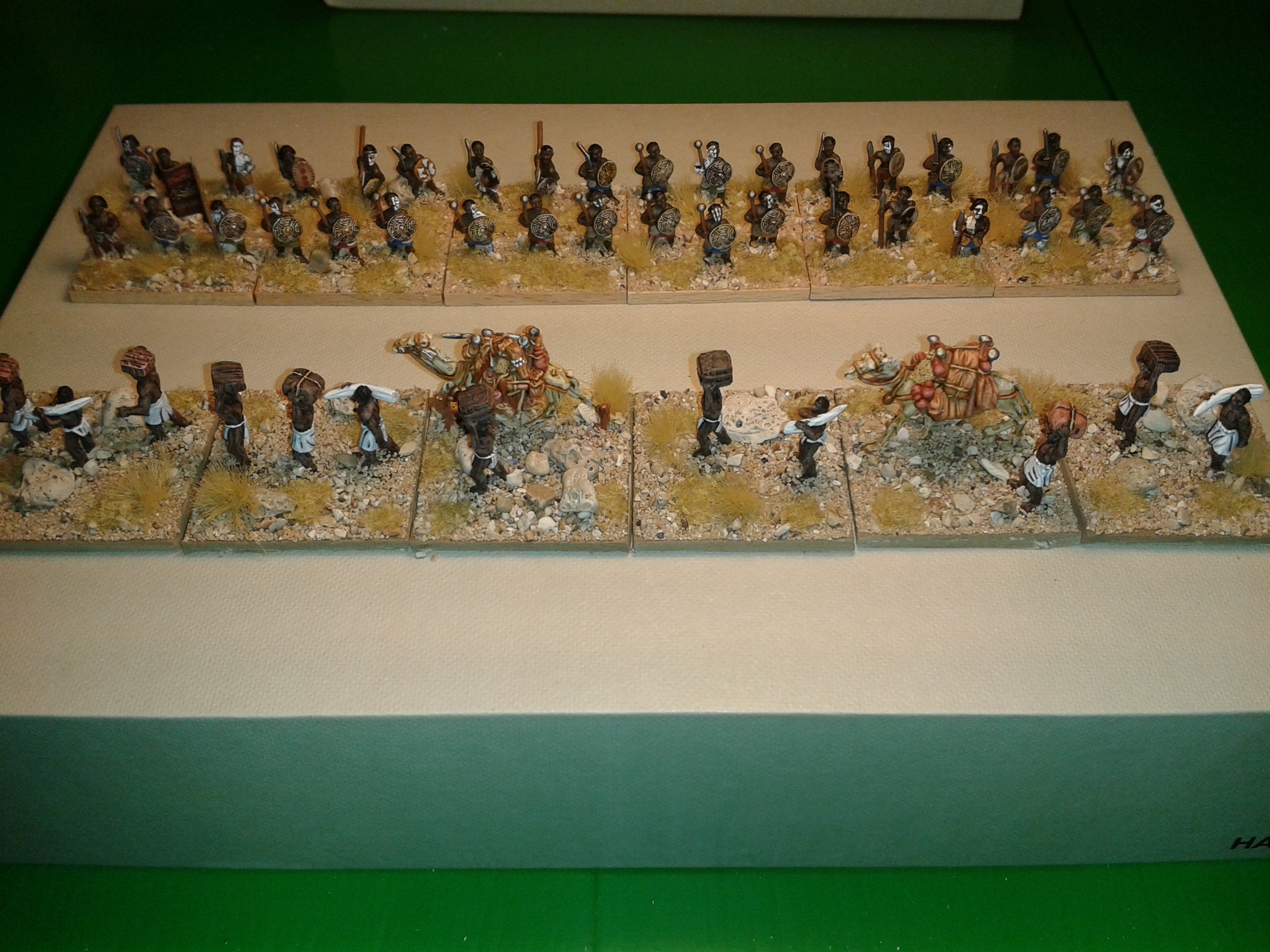 This african army is made by Enrico with a mix of miniatures from several manufacturers, including Essex, Eureka, Blue Moon and Feudal casting